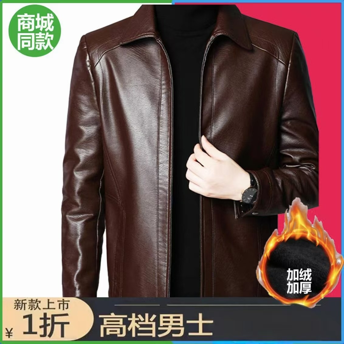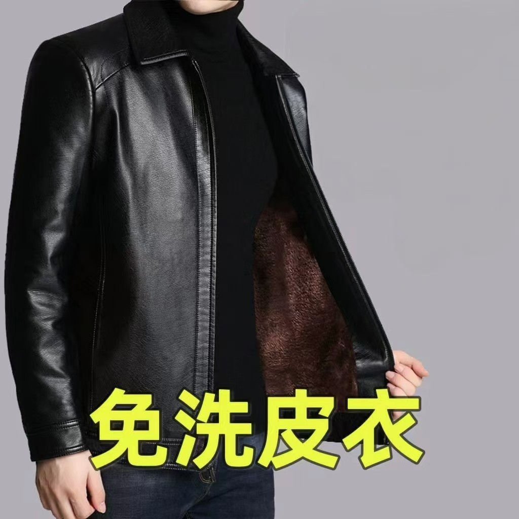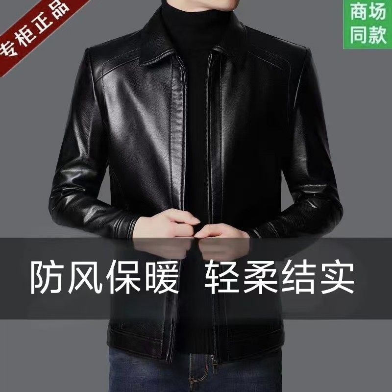 【立体剪裁 俊爽有形】海宁正宗中老年加绒保暖帅气羊皮皮衣